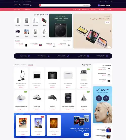 بیش از ۹۰ دموی فروشگاهی گرافیکی علاقه داری یه فروشگاه اینترنتی شبیه دیجیکالا داشته باشی، اما نمیدونی از کجا شروع کنی؟نگران نباش! ما توی نت ترفند، بیش از ۹۰ دمو حرفهای از قالب وودمارت رو برات آمادهکردیم که فقط با یک کلیک روی سایتت نصب میشن. نیازی به دانش برنامهنویسی نیستفقط انتخاب کن، نصب کن، و شروع کن! دمو های اختصاصی اختصاصی دیجی کالا تیک کالا آروژ شاپ آرایشی بهداشتی دانلود فایل رز گلد پیرل طلا و جواهرات سبزیجات الکترونیک شاپ خدمات طراحی لوکس پوش روشنایی لایتو پت لند فروشگاه عسل مگا مارکت ابزار آلات سبزینه آوانگارد دلیشا نورکالا مهاجرت خدمات خودرو فروشگاه ساعت هنوز تموم نشده ! گلچینی از بهترین دمو های قالب شرکتی فروشگاه سخت افزار مبلمان کافی شاپ گل و گیاه اکسسوری و جواهرات لوازم خانگی فروشگاه عینک ابزار آلات دریافت قالب